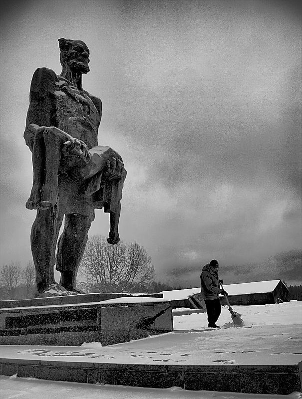 Это не монструазность. Фигура старика это олицетворение горя как такового. Которым буквально пропитан этот памятник. Оно в каждой крупинки гранита, из которого этот памятник сделан.