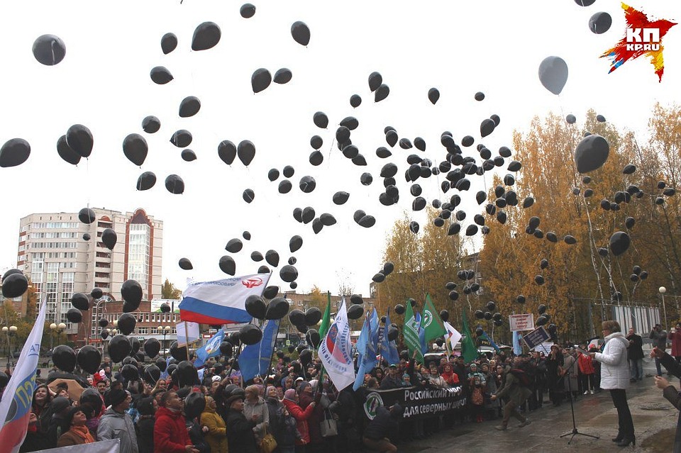 Все требования, прозвучавшие во время встречи, отправят в органы исполнительной власти России, президенту РФ и органам власти Коми. В завершение участники митинга дружно запустили в небо воздушные шары черного цвета, которые стали символом всего отрицательного в нашем государстве. Правда, несколько из них намертво запутались в макушках деревьев.