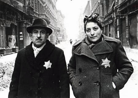 Как видим жутко истощенные и жутко измождённые, уничтоженные и чудом выжившие евреи после прогуливаются по Будапештскому гетто после освобождения и окончания холокоста.