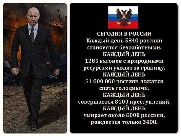 Почти все деньги, полученные за продажу полезных ископаемых, уходят обратно на Запад. Стоит ли говорить, что мелкий и средний бизнес почти полностью задавлен правительством. Выживают лишь те, кто старается уйти от налогов, находясь под угрозой статьи УК РФ.