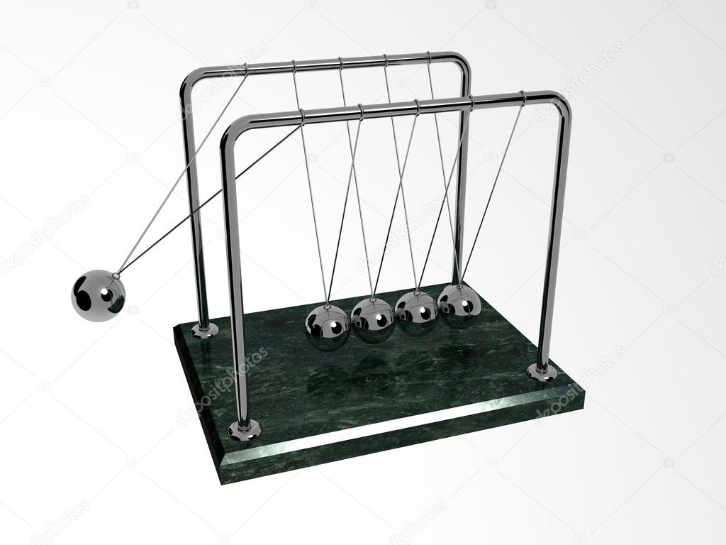 Если между ними будут зазоры, то когда крайний шар ударит по следующему и встанет, то следующий из вертикального положения пойдет вперед и вверх. Часть кинетической энергии он заберет на свою потенциальную. Затем вернется обратно и пнет первый.