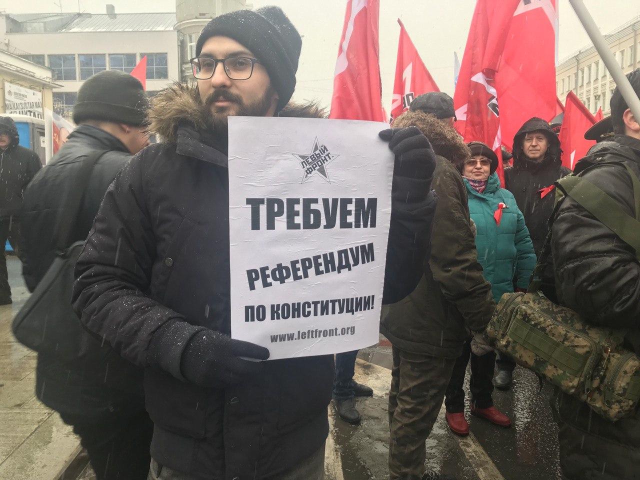 Координатор Левого Фронта Сергей Удальцов перед началом акции заявил, что если власти не включат в список для голосования базовые социальные поправки в Конституцию от оппозиции, то лево-патриотические силы будут противодействовать мошеннической спецоперации Кремля. Он напомнил основные поправки в Конституцию от левых сил: госсобственность на природные ресурсы; возраст выхода на пенсию — 55/60; плата за услуги ЖКХ не более 10% от дохода семьи; прогрессивное налогообложение; привязка зарплат чиновников к прожиточному минимуму.