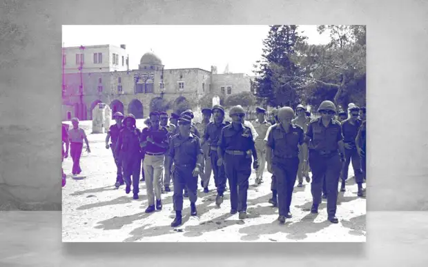 Шестидневная война. Министр обороны Моше Даян, начальник штаба Ицхак Рабин, генерал Рехавам Зееви и генерал Наркис в Старом городе Иерусалима. Коллаж © L!FE Фото: © Wikipedia.org