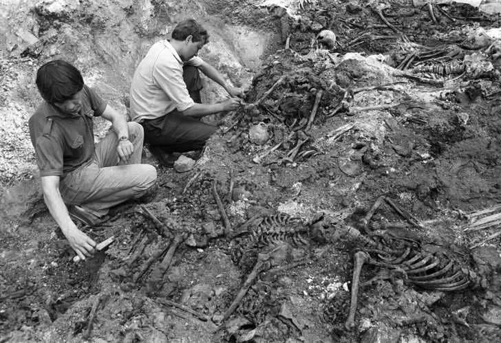 Раскопки на месте массового захоронения жертв сталинских репрессий. Лысая гора. Посёлок Шершни. Челябинская область. Россия. Лето 1989 г. Фото: Борис Клипиницер. ТАСС.