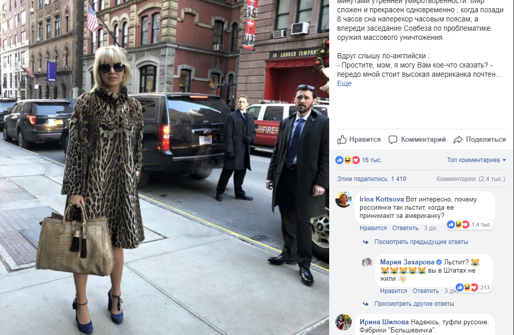 Отмечают, что представитель МИД России, героиня #Tatler и патриот города Нью-Йорка Мария Захарова полностью лишена вкуса в одежде  +@-