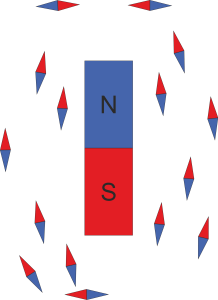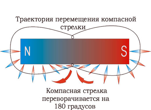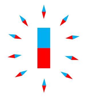 Он выпучил на меня глаза и сказал - "ОДНО!"Но у магнита два полюса - продолжал я пытать студента..."Да! Но мы видим только один магнит, поэтому и поле у него ОДНО."Что тут скажешь? Железобетонная, стальная, платиновая логика.Но стрелки компаса упрямо говорят, что даже у одного магнита, ДВА ПОЛЮСА.Если расположить компасы вокруг магнита, то они покажут такую картину -