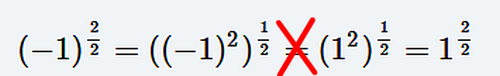 \( +1=(-1)^{\frac{2}{2}}\neq 1^{\frac{2}{2}}=-1 \)