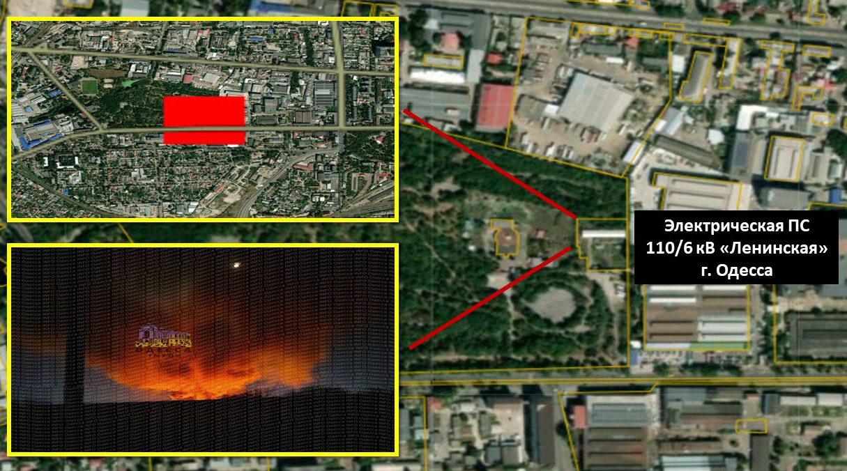 в Одессе фиксирует сильное возгорание в районе электрической подстанции 110/6 кВ «Ленинская».