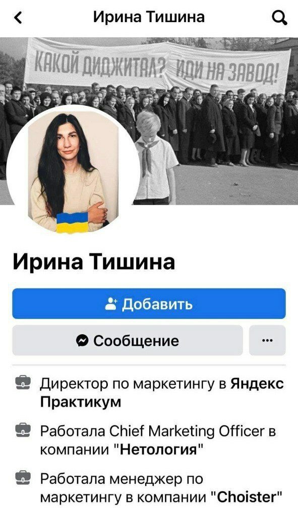 Щира украинка с жовто-блакитным прапором в профиле. Этот директор по маркетингу и другие сотрудники открыто поддерживают Украину, при этом, по данным из личных аккаунтов, занимают должности в российской IT-компании. Причем после того, как их позиция стала общественным достоянием часть «сотрудников» быстро потерли информацию о своей причастности к работе «Практикума».
