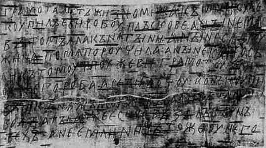 На бересте в основном писали чернилами, а не царапали буквы. В. Л. Янин сообщает: «Все, без исключения, книги и грамоты на бересте, которыми наука располагала до 26 июля 1951 года, были написаны ЧЕРНИЛАМИ» [993], с. 30. Но на широко известных волховско-новгородских грамотах буквы процарапаны. Почему здесь не сохранилось чернильных записей? Дело, по-видимому, в следующем. Конечно, берестяные грамоты, найденные в болотистой земле, не сохранили на себе остатков чернил. Чернила попросту смылись. Текст сохранился лишь на тех редких грамотах, где буквы были процарапаны. Пример найденной археологами волховско-новгородской грамоты приведен на рис. 43.