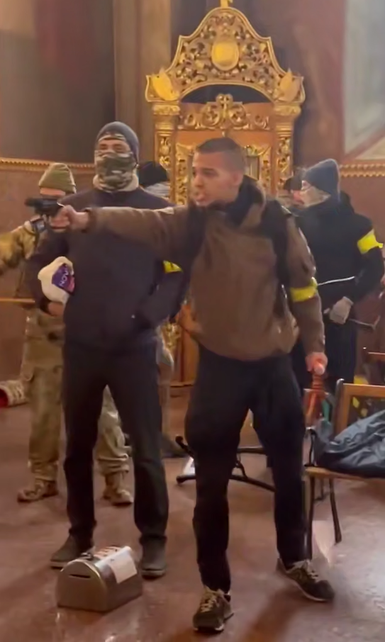 Боевики диктатора Зеленского,  совершают набеги на православные храмы на Украине и угрожают расстрелять верующих, которые осмеливаются защищать свою церковь.